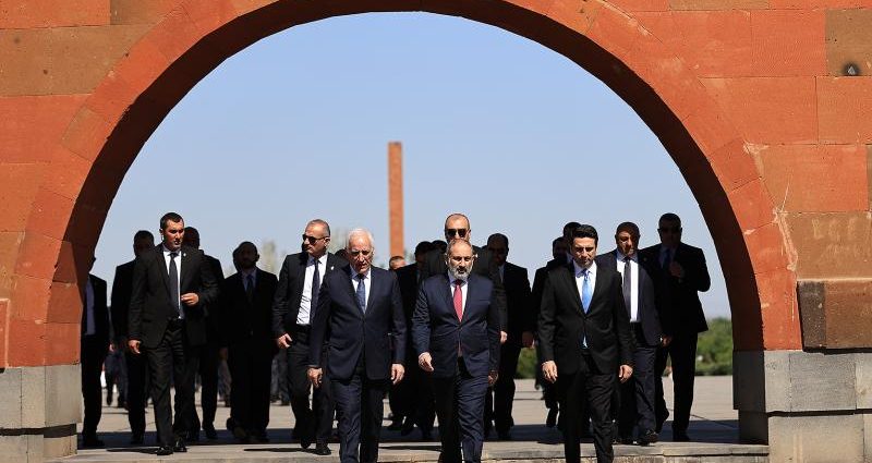 В ходе визита премьера сопровождают президент Армении Ваагн Хачатурян и председатель Национального Собрания Ален Симонян.